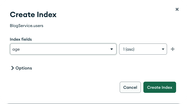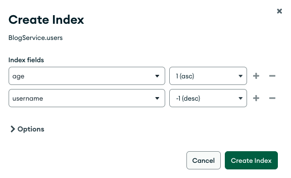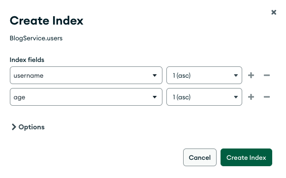 username 오름차순, age 오름차순에 대한 인덱스를 만들어보자.