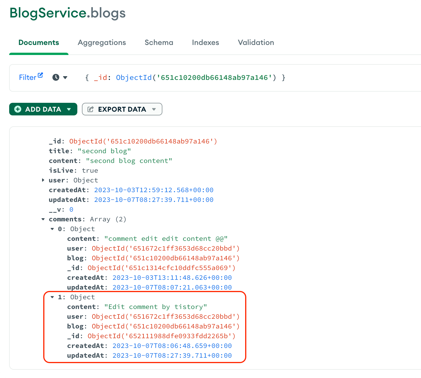 Part 3에서 조회의 응답 속도를 더 개선하기 위해 내장(Nesting)방법을 이용해서 조회 속도를 더 개선했었다.